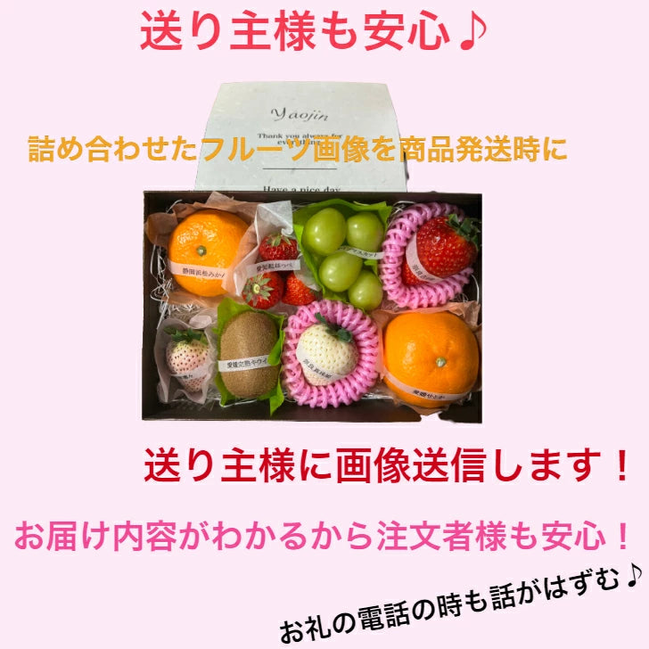 ※セット内容はその時の旬のフルーツを中心にお詰め致しております。季節や天候、入荷状況によって中身が異なりますが、どの商品も自信を持って提供いたしますので、ギフト内容、果物については当店へお任せください!