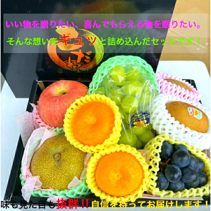旬のフルーツギフト、化粧箱入り!いい物を贈りたい、喜んでもらえる物を贈りたい。そんな想いをギュッと詰め込んだセットです!